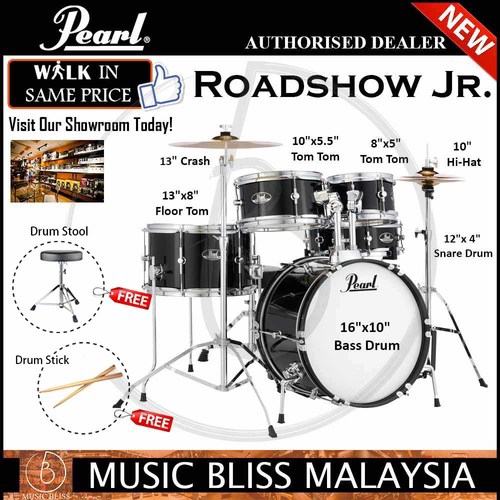 Details About Pearl Roadshow Jr 5 Pc Drum Set W Hardware And Cymbals Jet Black