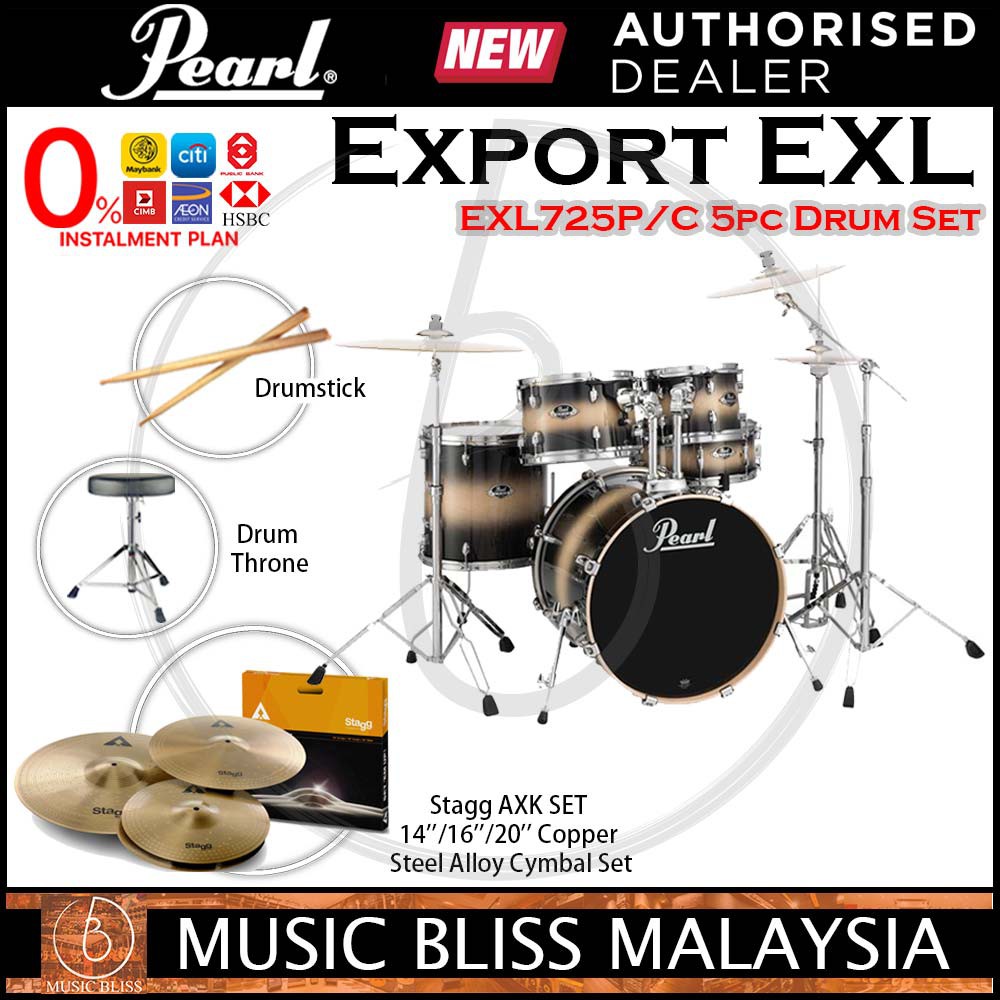 Stok Ready Pearl Export Exx725 5 Piece Drum Set With Free Cymbal