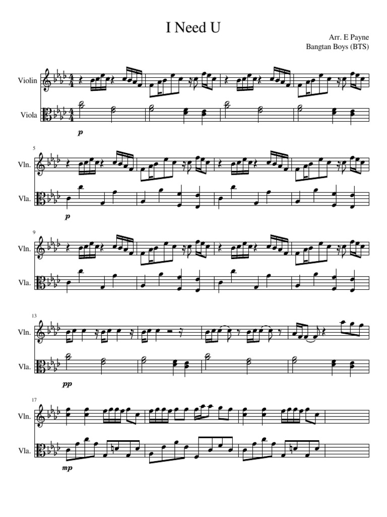 Bts I Need U Violin And Viola Sheet Music
